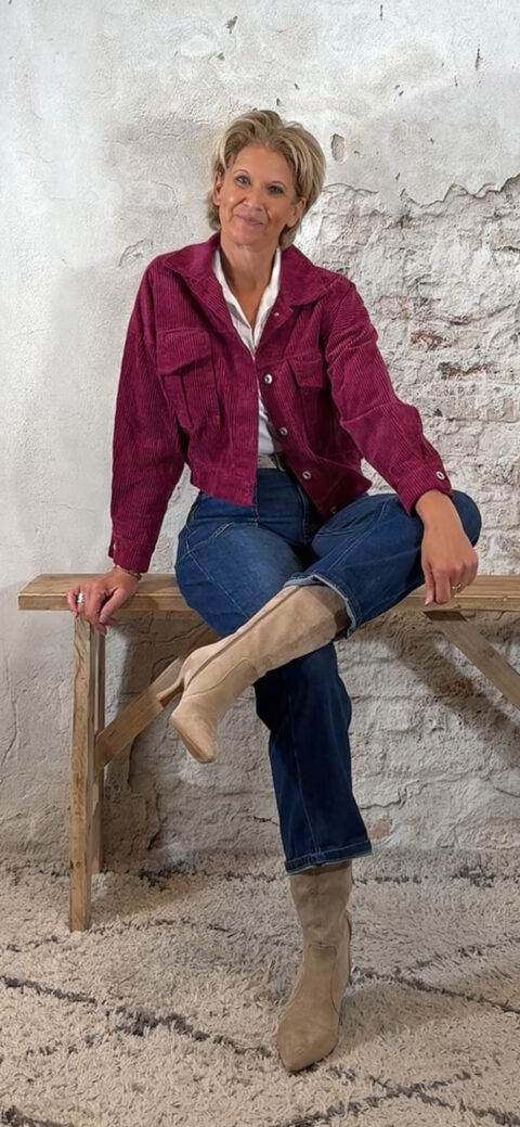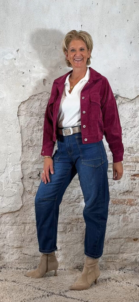 Het Ailan rib jack is een stoer kort jasje in jeans-jack model, maar dan uitgevoerd in een zachte rib met stretch.