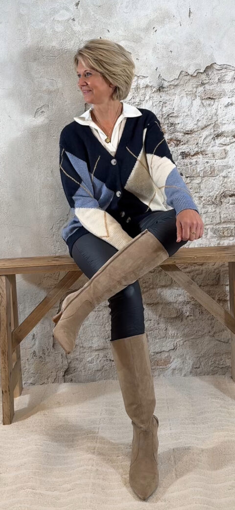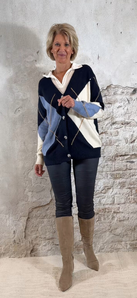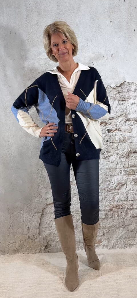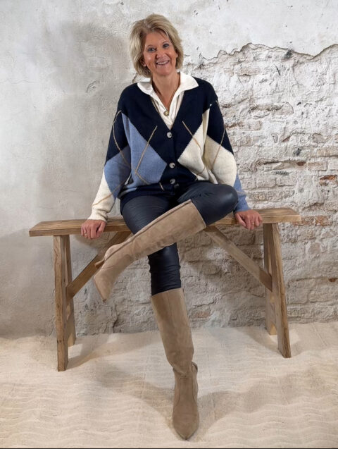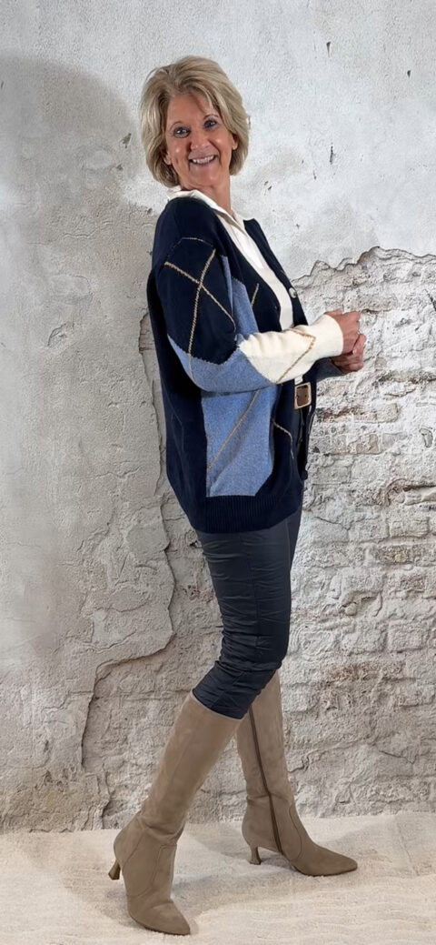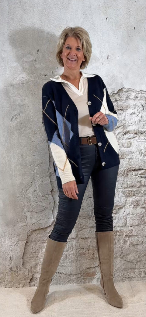 Het Steffy Vest Ruit Blauw is een tijdloos, stijlvol vest dat elke outfit meteen een cozy en klassieke uitstraling geeft. Het ruitdessin bestaat uit jeansblauw, zand, wolwit en donkerblauw — zachte tinten die prachtig met elkaar harmoniëren en super makkelijk te combineren zijn.