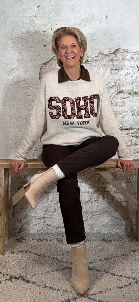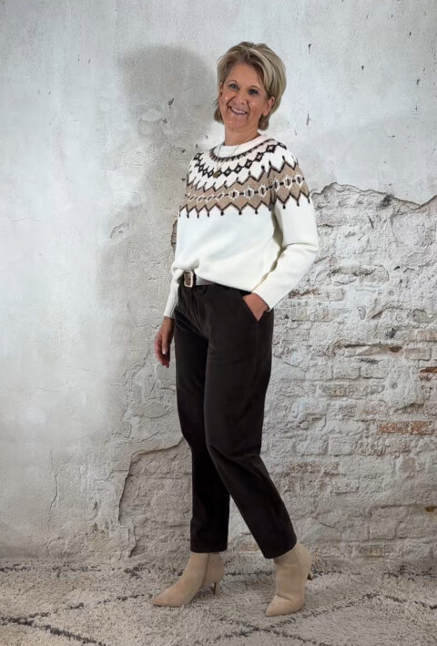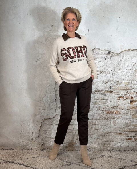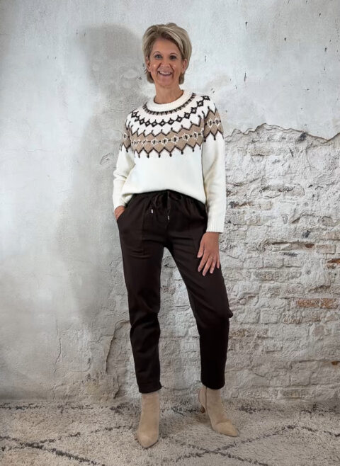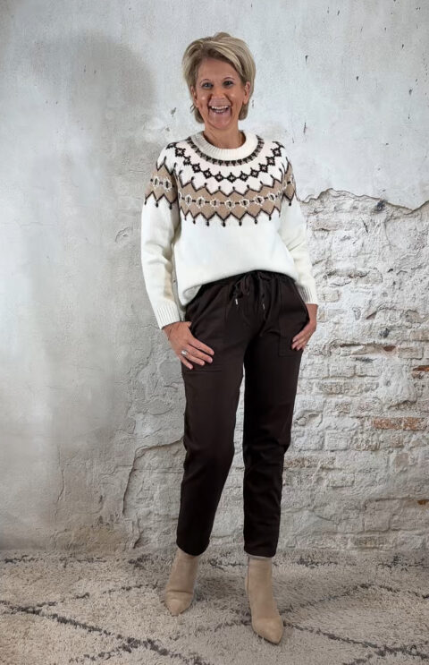 One size en draagbaar van maat 38 t/m 42. Middelhoog tot hoog model. Zit als een jogger, maar met de uitstraling van casual chic. Mooi te combineren met diverse truien uit onze collectie en perfect bij het bomberjack in bruin voor een ton-sur-ton look.