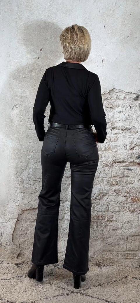 Basic polo longsleeve met V-hals en glanzende details. One size voor maat 38 t/m 42.