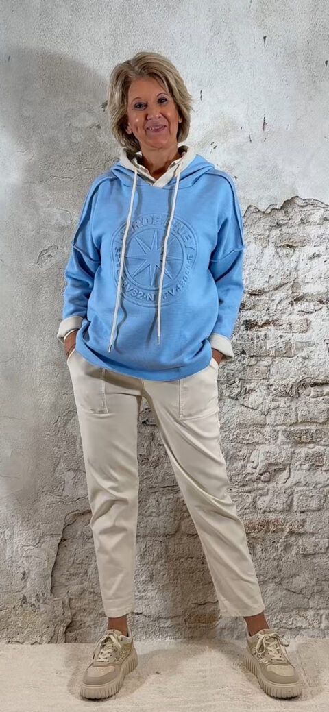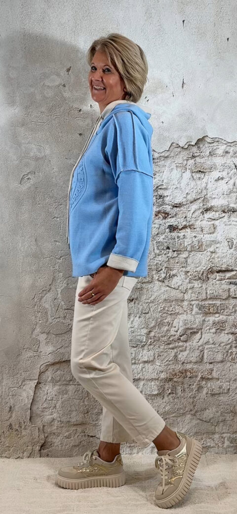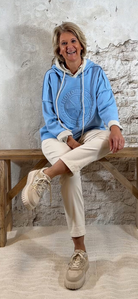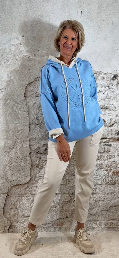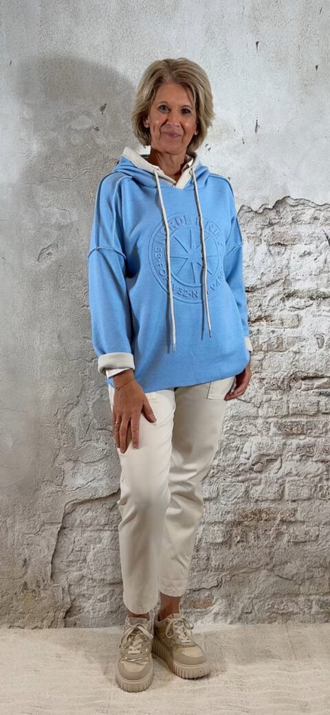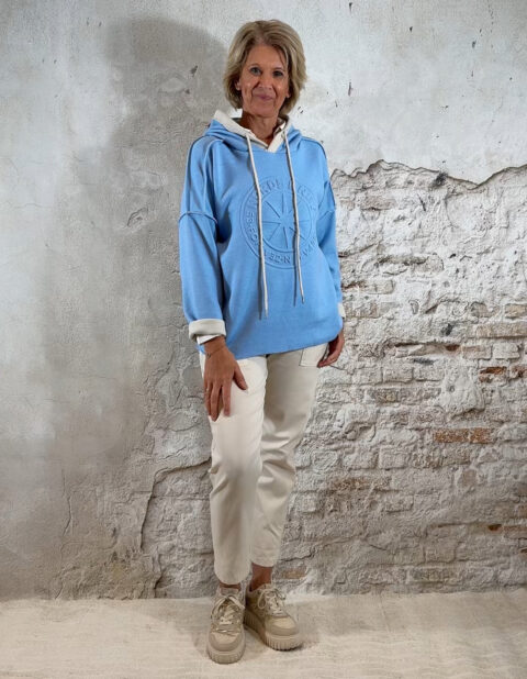De Ailan Hoodie 3D in lichtblauw is een stoere, vrouwelijke knit hoodie die je het hele jaar door kunt dragen. Het is een gebreide hoodie sweater met een stevig, dubbelzijdig breisel dat luxe én comfort combineert.