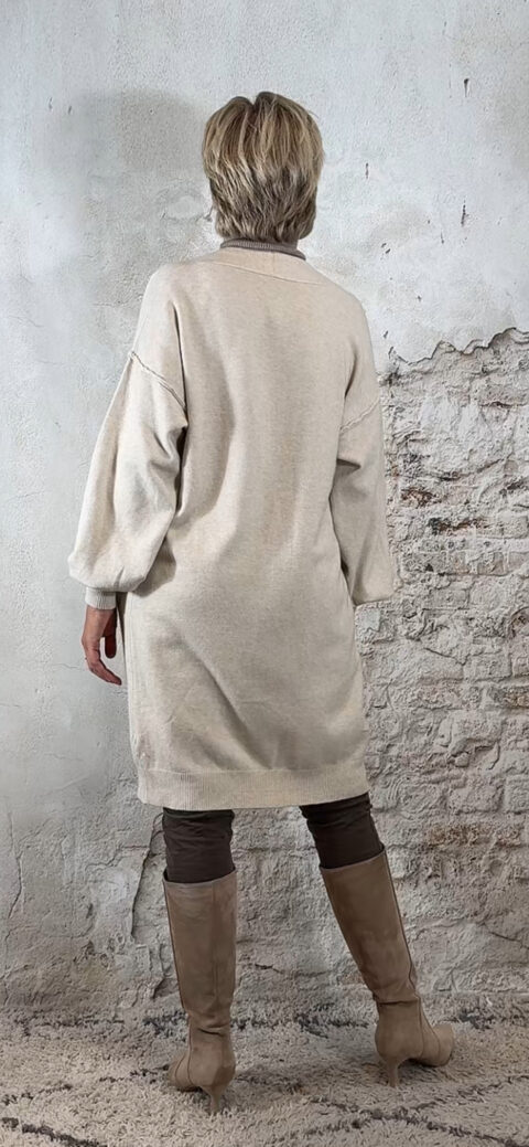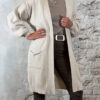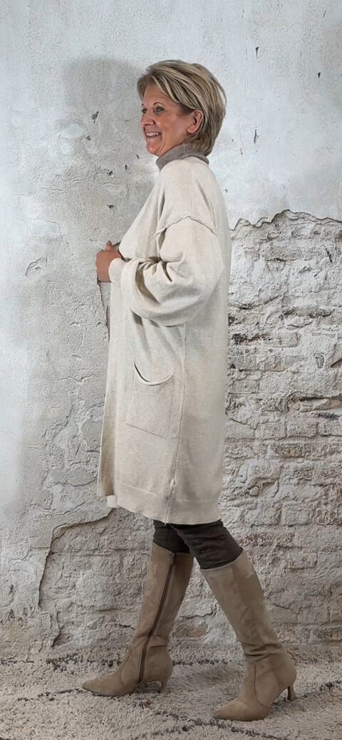 Ailan midi vest van zachte viscosemix zonder wol, met iets wijdere mouw en aansluitende royale manchetten (bloused effect), ingebreide zakken en nonchalante ribbelafwerking.