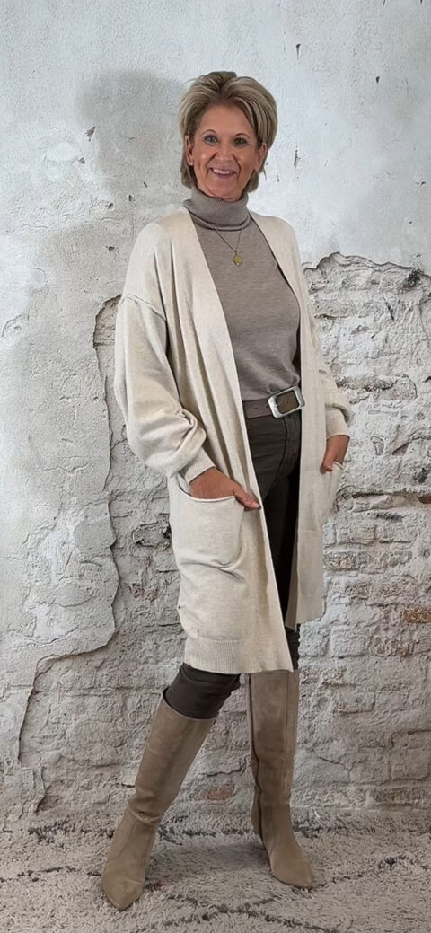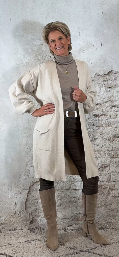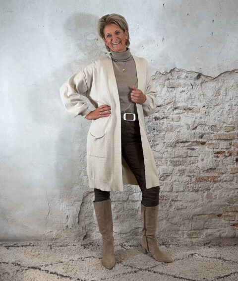 De mouwen zijn afgewerkt met een nonchalante ribbelrand – alsof je de binnenkant ziet – dat geeft het vest net dat beetje extra en een relaxte look. Verkrijgbaar in bruin en beige.