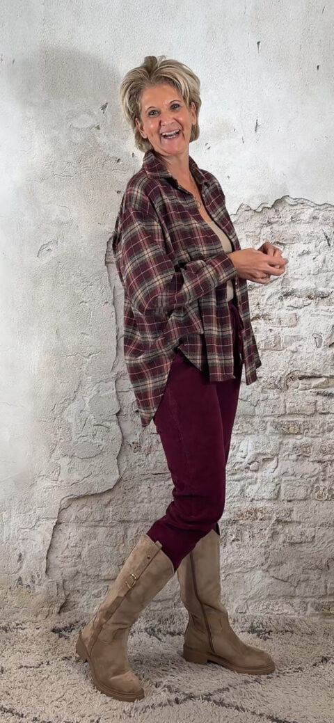 Kleuren: donkerblauw, bordeaux, zwart, bruin en khaki.