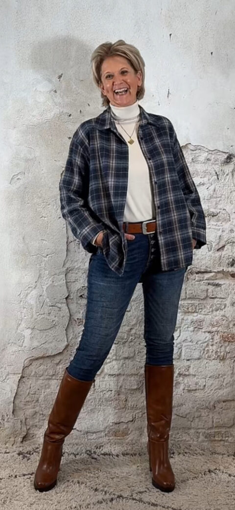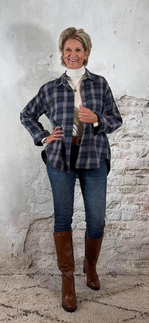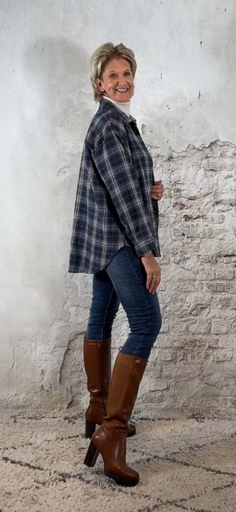 146563. LAATSTE! Bibi lumberjack blouse donkerblauw