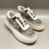 De Cleo sneaker in bruin is een echte blikvanger met zijn unieke ingeweven motief. Het patroon geeft de sneaker een stijlvolle, almost bohemian touch, terwijl de witte zool met contraststiksels zorgt voor een moderne, sportieve uitstraling.