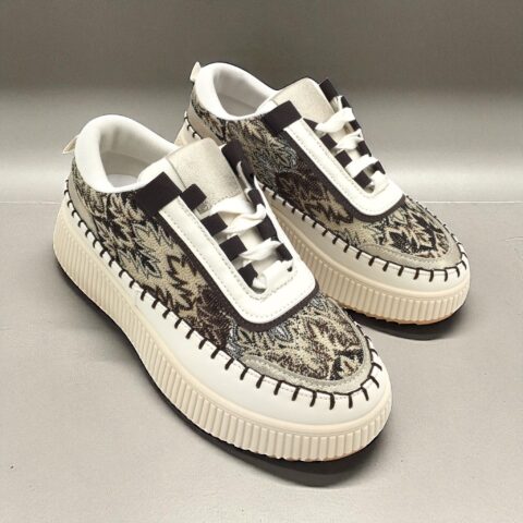 Cleo sneaker in bruin met ingeweven motief. Comfortabele en lichte sneaker, verkrijgbaar in maat 36 t/m 41. Ze vallen een halve maat kleiner!