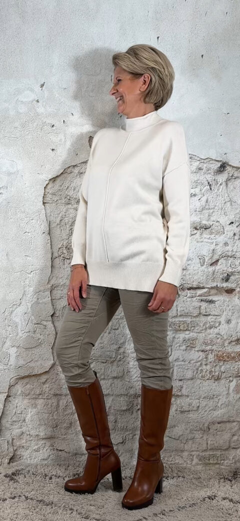 De Elza Oversized Turtle Pullover in ecru is een heerlijke trui voor iedereen die houdt van zachte stoffen en een nonchalante pasvorm.