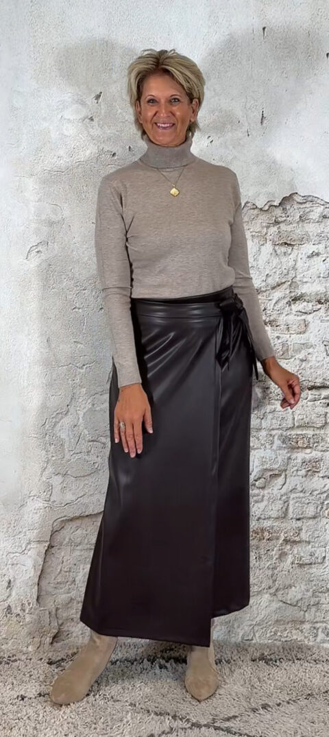 De Evy basic coltrui in taupe is een zachte en veelzijdige knit die je eindeloos combineert. De col kan je één of twee keer omslaan, waardoor je zelf bepaalt hoe hoog je de col draagt.