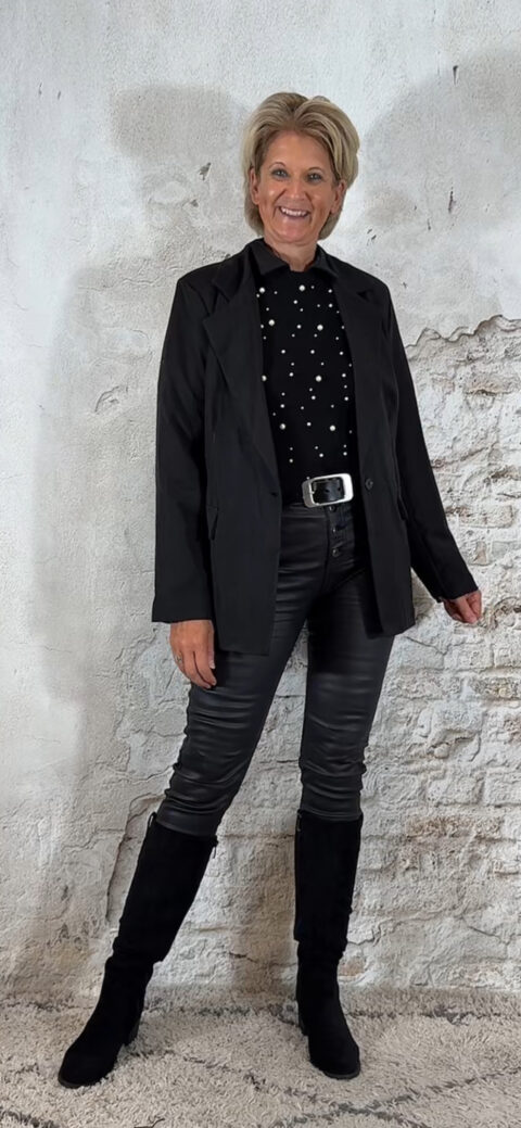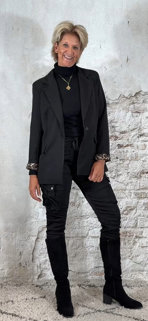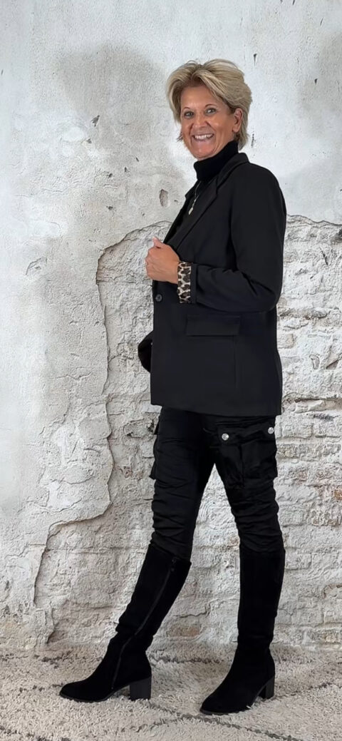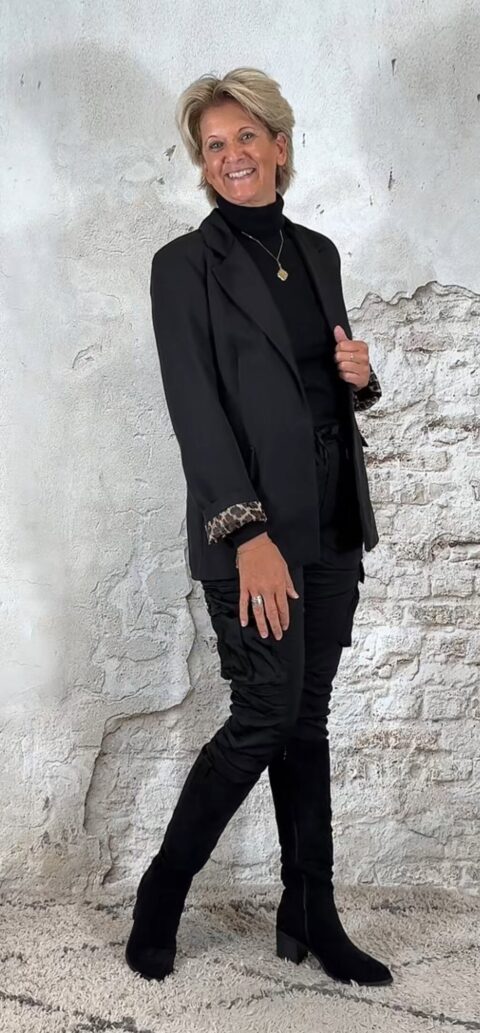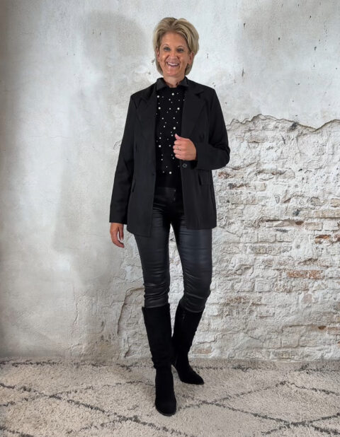 Elastan: geeft de stof net dat beetje stretch, zodat de blazer mooi aansluit én comfortabel meebeweegt.