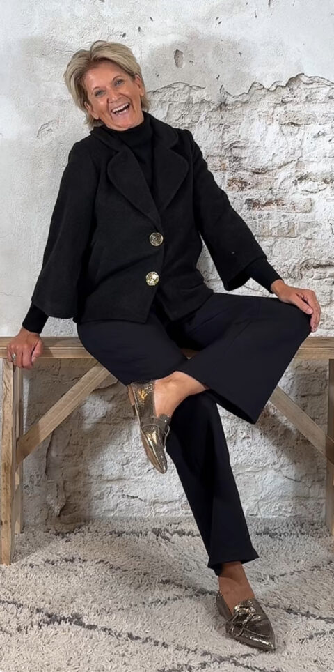 138808. Evy wollook A-lijn jasje zwart