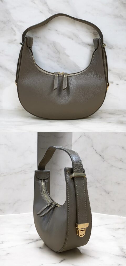 De Hobo bag is een tijdloze schoudertas van echt leer – stijlvol, praktisch en duurzaam. Het model heeft een dubbele rits aan de bovenkant en is afgewerkt met gouden ritsen en accenten, wat de tas een chique uitstraling geeft.