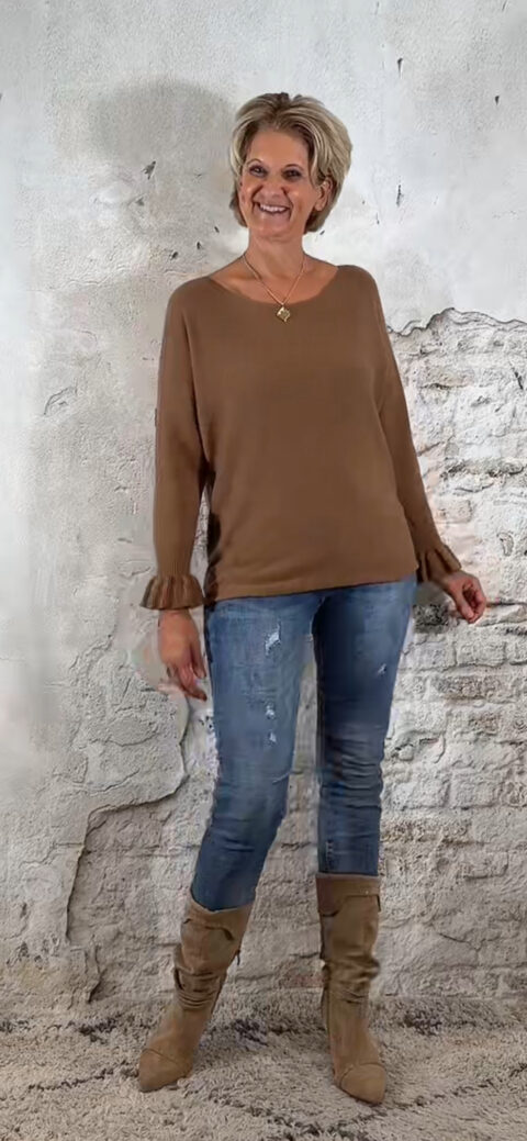 De Iris pullover ruffle is een vrouwelijke basic met een subtiele flair.