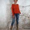 Deze trui heeft een lichte vlindermouw met een elegante ruffle aan de uiteinden en een ruime ronde hals die mooi valt.