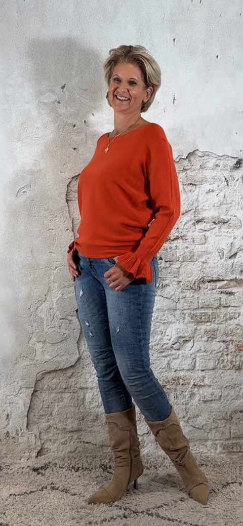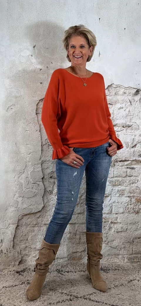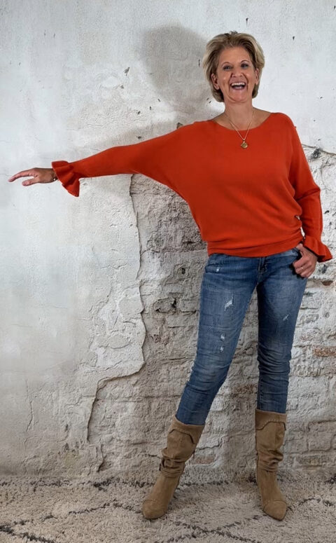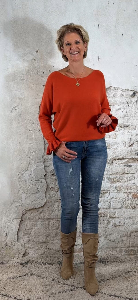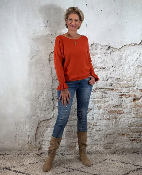 De Iris pullover ruffle is een vrouwelijke basic met een subtiele flair.