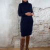153008. Juul gebreide kabeljurk met ribbelcol donkerblauw