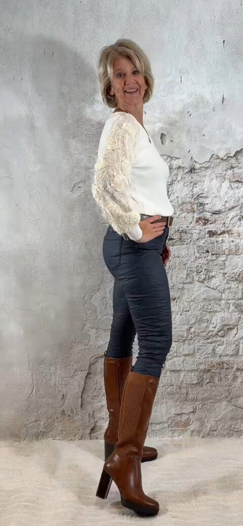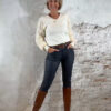 De buttermilk tint is zacht, fris en makkelijk te combineren. Dankzij de V-hals en de soepele pasvorm draag je deze pullover zowel casual als chic. Combineer haar met een wijde broek, rok of leatherlook pants — altijd goed.