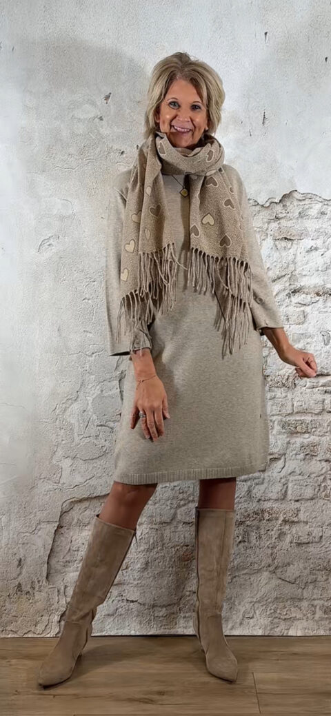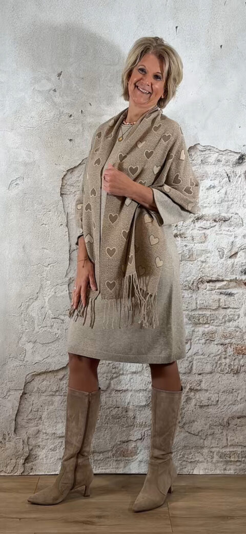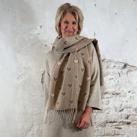 De Suus Wintersjaal Hartje is zo’n prachtige, rustige sjaal in zachte beige- en taupetinten — ideaal voor iedereen die houdt van een subtiele, warme uitstraling. Het fijne hartjesdetail geeft de sjaal nét dat charmante, lieve accent zonder druk te worden.