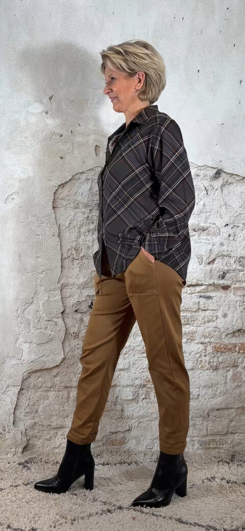 Door de iets langere achterkant valt hij mooi over de billen – perfect om zowel in als over een broek te dragen.