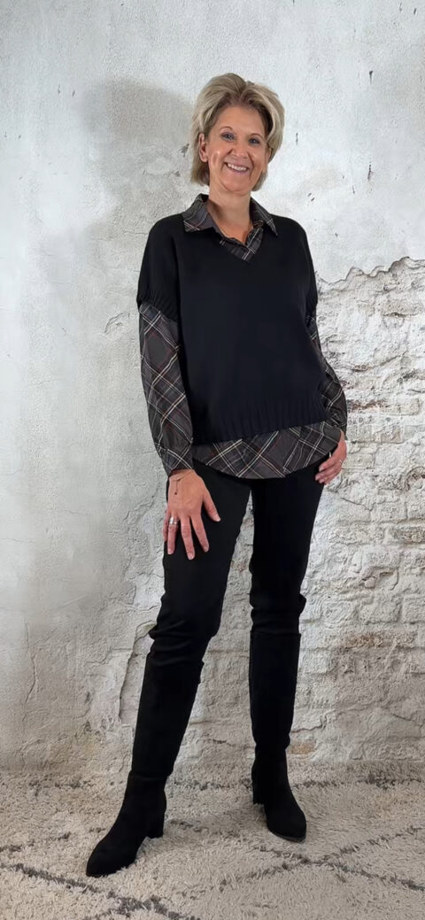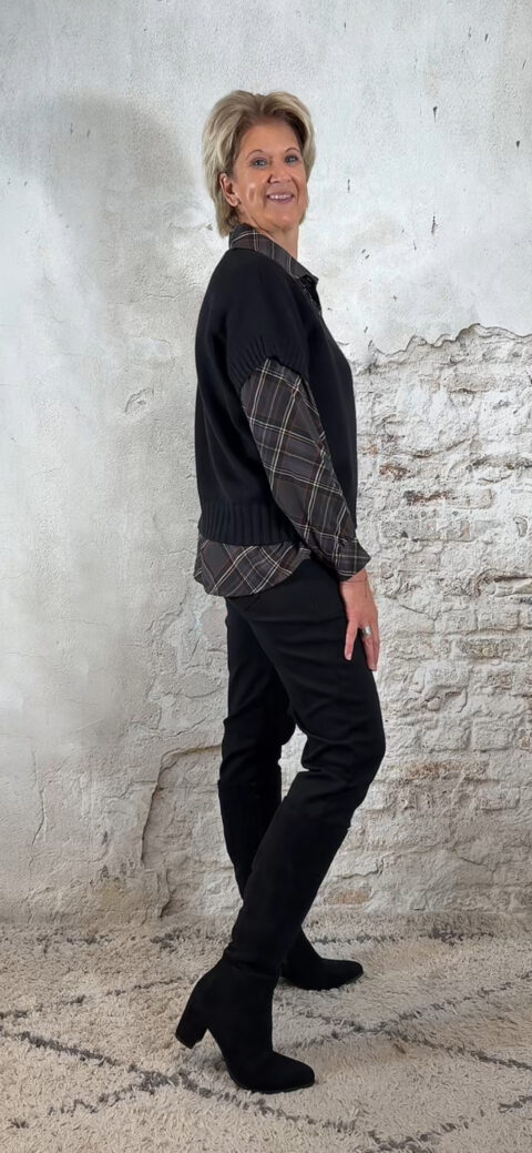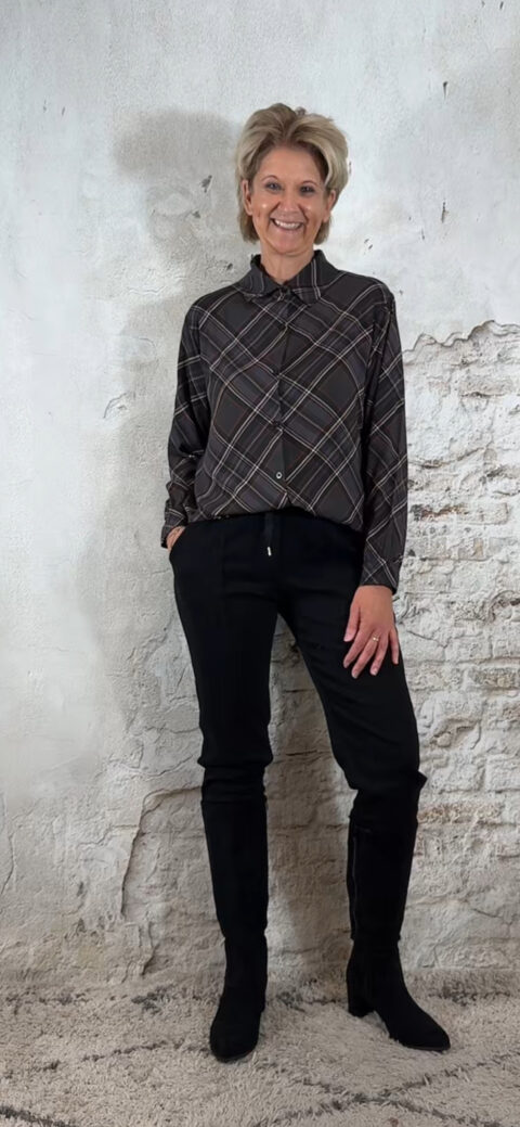 151435. Bibi viscose blouse geruit donkergrijs