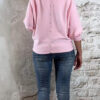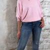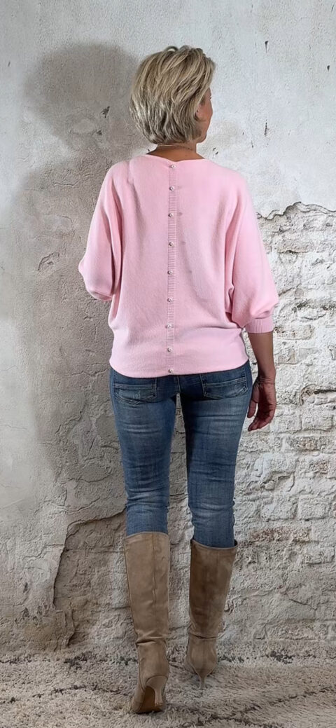 Met wijde mouwen die smal toelopen en een aansluitende onderkant die zorgt voor een mooie bloezende look, valt hij soepel over je buik – ideaal als je dat net wat wilt camoufleren. Achterop, midden over de rug, zit een verticale rij subtiele pareltjes voor een chique touch.