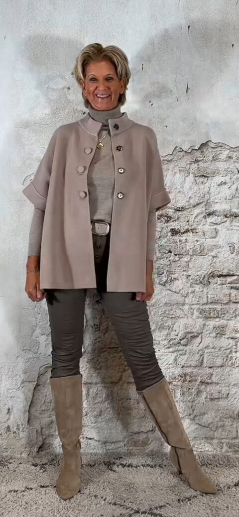 • 142153. LAATSTE! Evy oversized 4-knoops vest taupe
