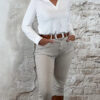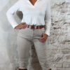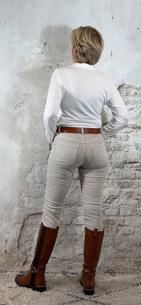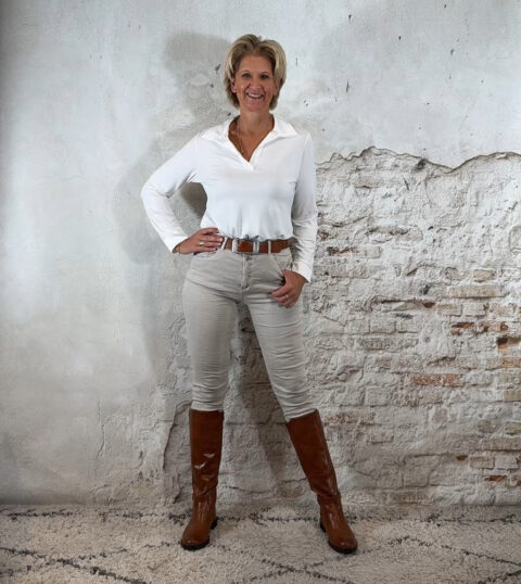 • Bij ronde heupen en vollere billen: neem een maat groter. Hij kan bij de buik dan iets losser zitten, maar met een riem valt dat niet op.