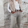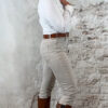 Kleuren: taupe/bruin, khaki, zand, beige, donkerblauw, ecru, wit en licht grijze jeans.