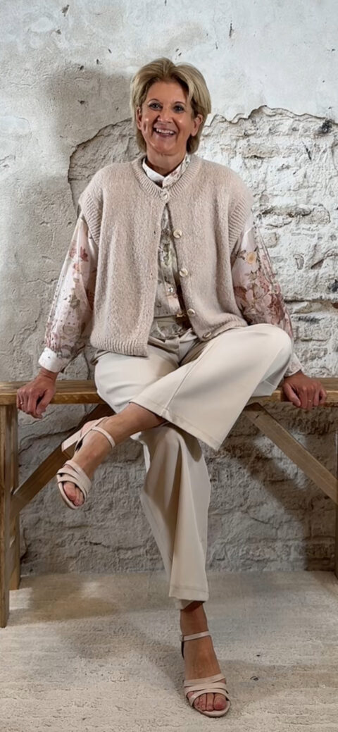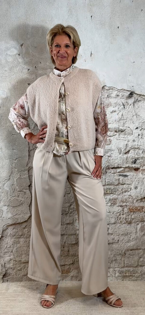 Het Evy mouwloos vest is een luxe en vrouwelijk item dat perfect is voor het voorjaar. Verkrijgbaar in beige en zacht roze, twee zachte tinten die je eindeloos kunt combineren.