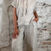Onderaan zit een speels lock randje en de schoudernaden zijn afgewerkt met zichtbare afgelokte details, wat zorgt voor een stoere twist.