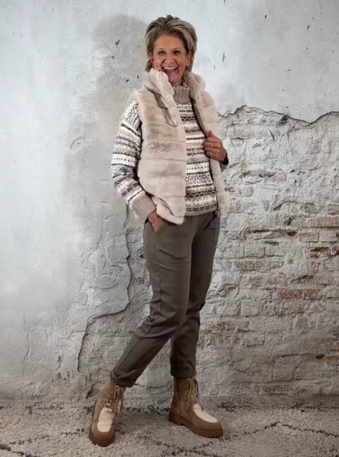 One size en draagbaar van maat 38 t/m 42. Middelhoog tot hoog model. Zit als een jogger, maar met de uitstraling van casual chic. Mooi te combineren met diverse truien uit onze collectie.