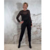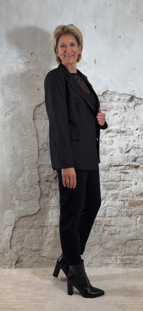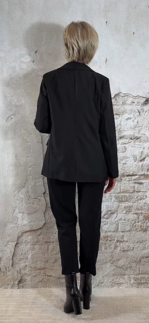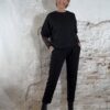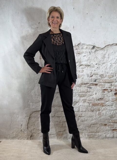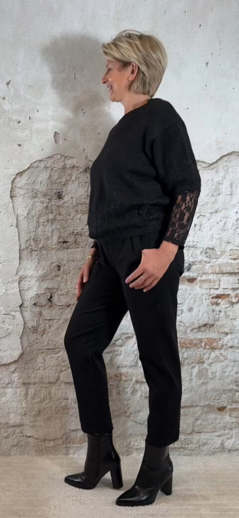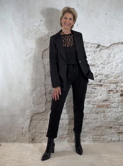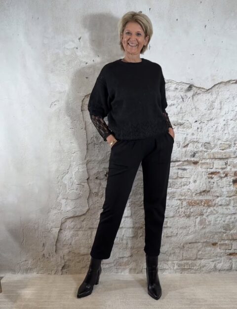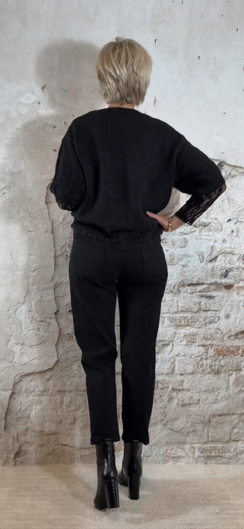Gemaakt van 80% viscose, aangevuld met nylon en elastan – hierdoor voelt de broek zacht en ademend aan (viscose), blijft hij stevig en vormvast (nylon) en heeft hij een comfortabele stretch (elastan) die mooi terugveert.