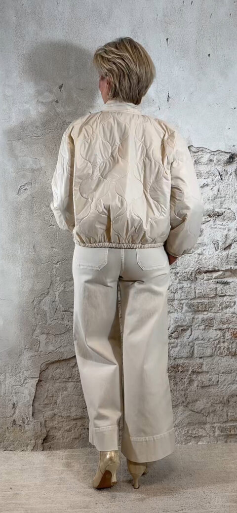 Het Ailan bomberjack in beige is een stijlvol en comfortabel tussenjasje dat perfect is voor het voorjaar en het najaar. Het jack is licht gewatteerd en draagt heerlijk zonder zwaar aan te voelen. De beige kleur geeft een rustige, tijdloze uitstraling en laat zich makkelijk combineren met vrijwel alles.