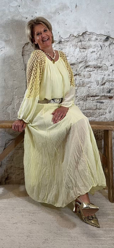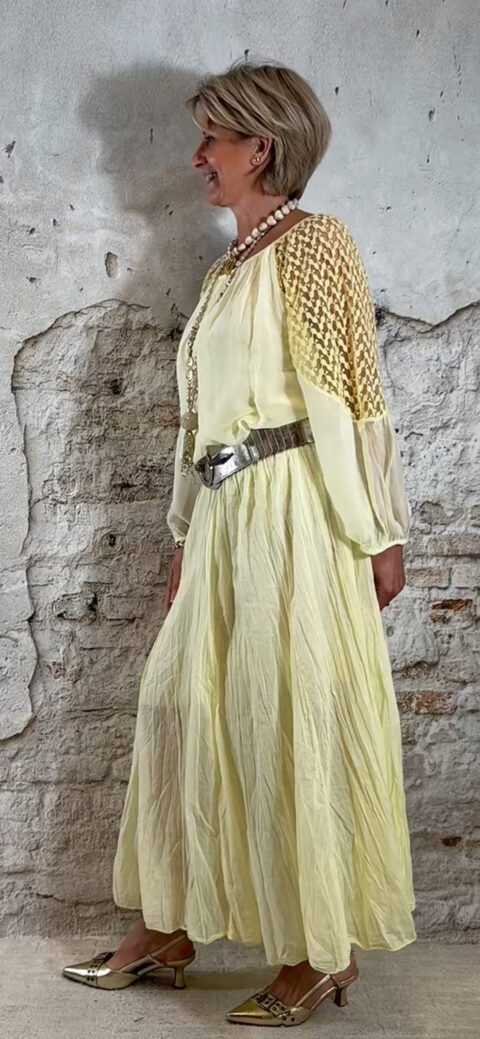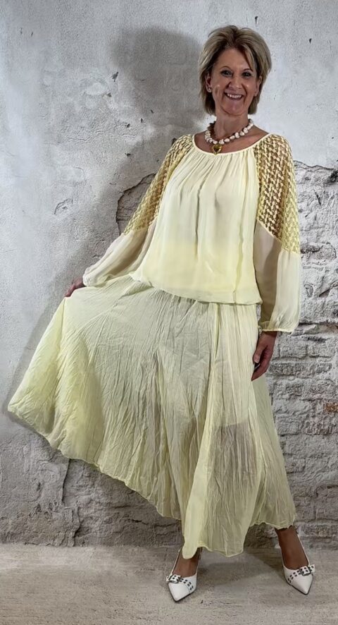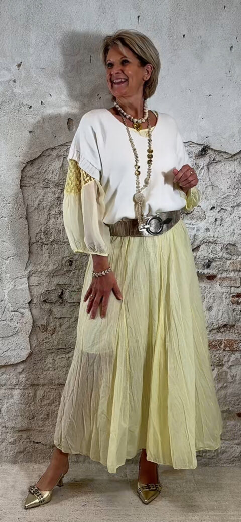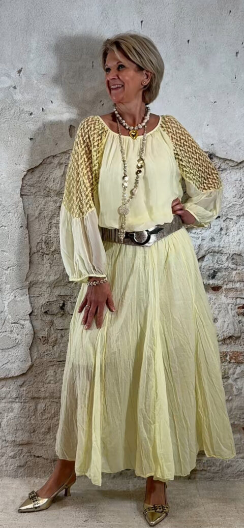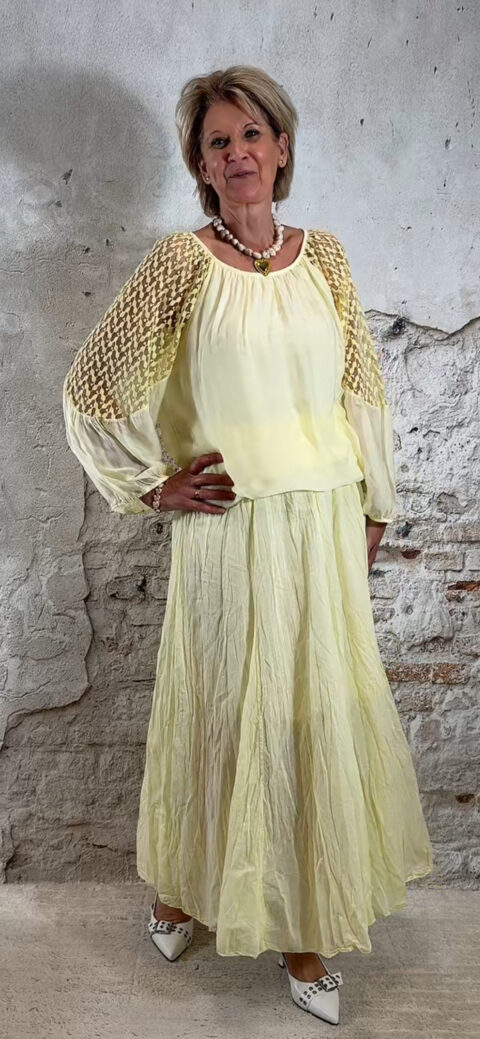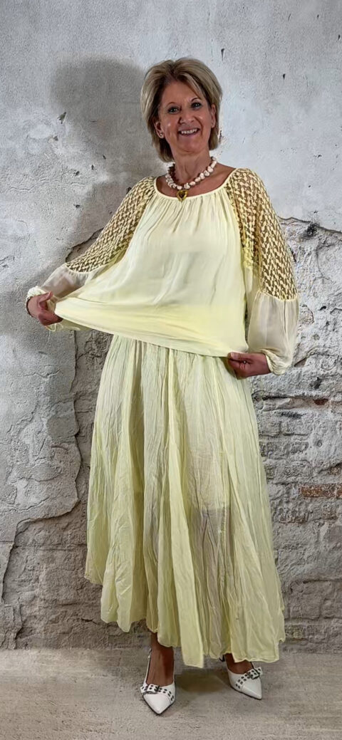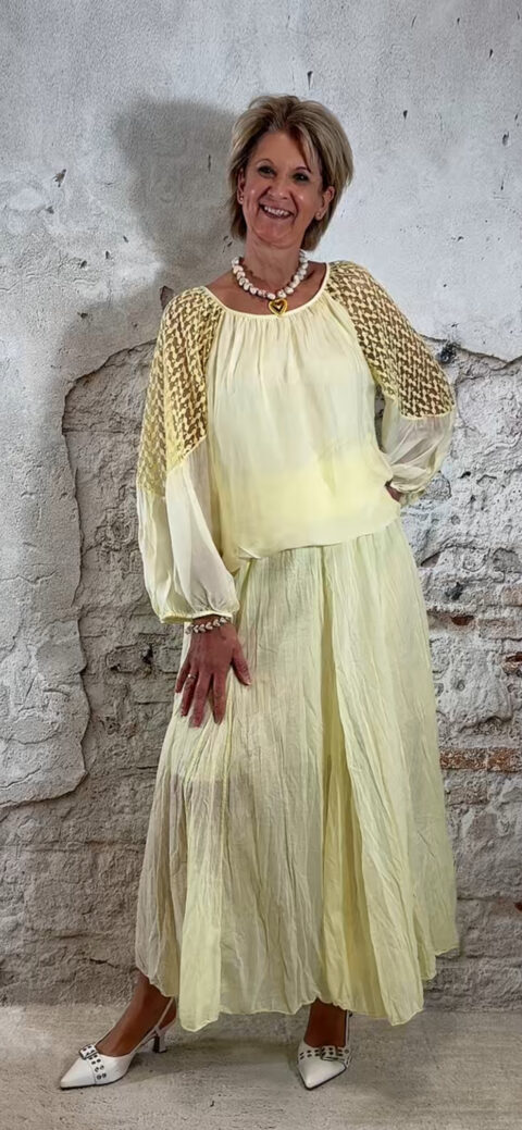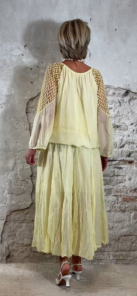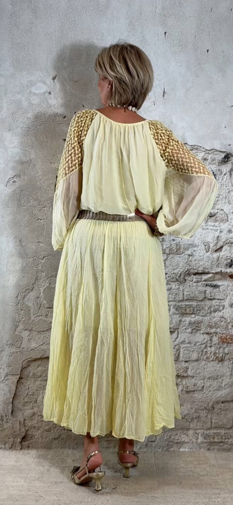 Perfect te combineren met de Ailan ballon top in geel voor een complete set. Ook mooi met de Evy pullover met kapmouw in off white voor een zachte en stijlvolle look.