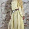 Maak je outfit af met lange kettingen en een elastische riem. Let op: de riem heeft aan de achterkant kleine schroefjes, daarom adviseren wij deze af te dekken met een plakkertje om beschadiging aan kwetsbare stoffen te voorkomen.