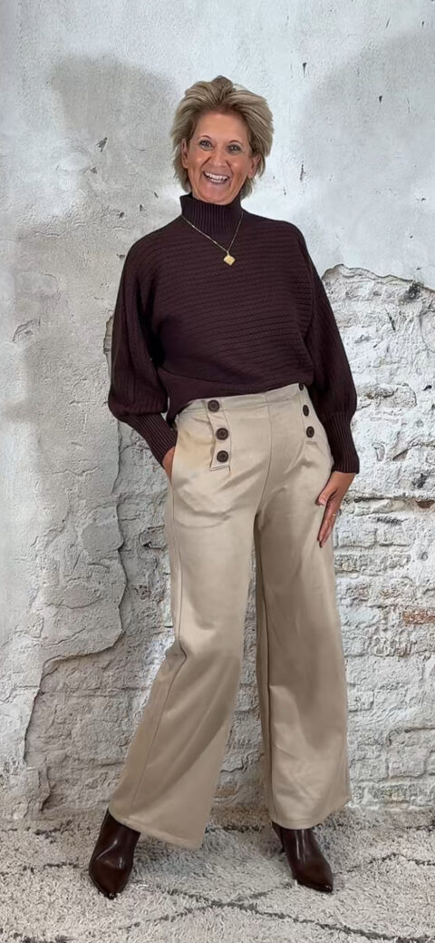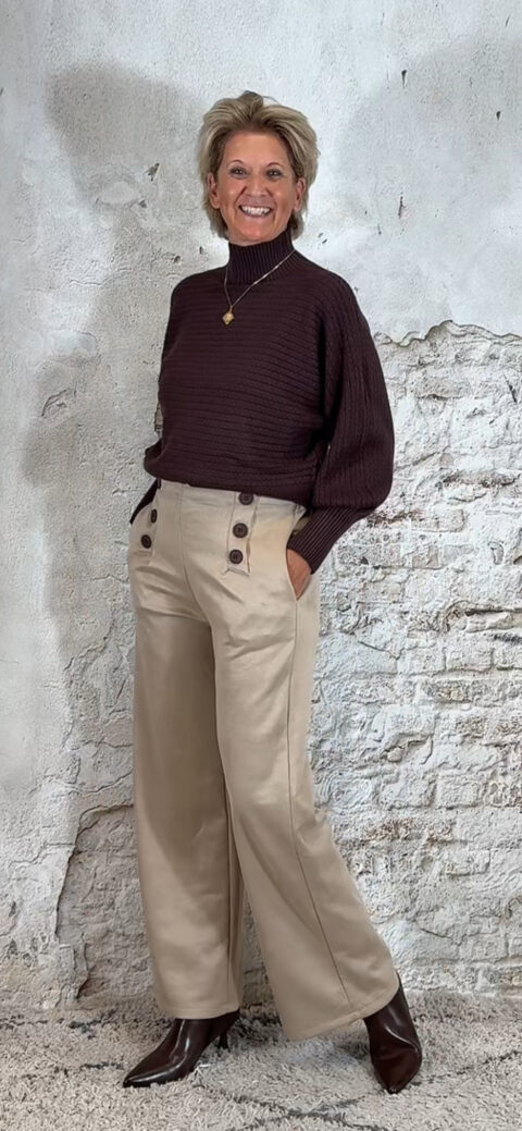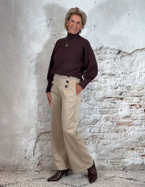 Kleuren: ecru, bruin, camel, zand, bordeaux, donkerblauw, zwart, oudroze, grijs, khaki