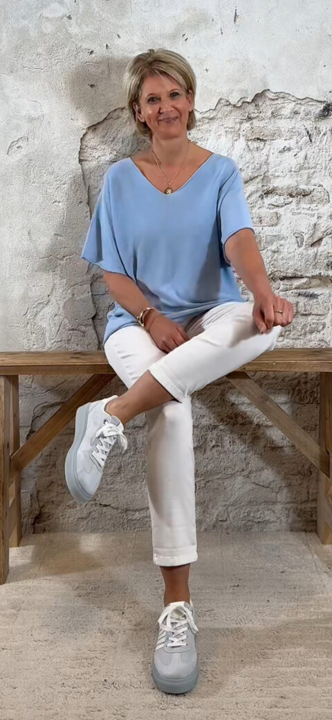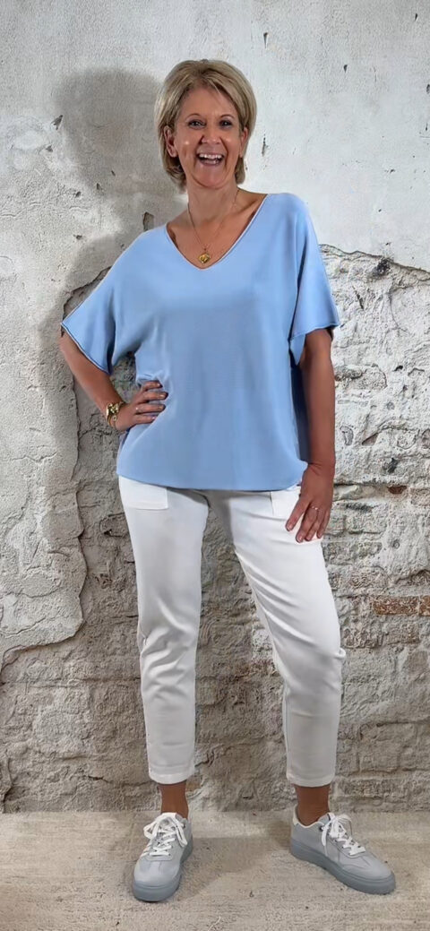 Perfect te combineren met een lichte stretch broek of een jeans, maar ook prachtig met een elegante broek voor een verzorgde look.