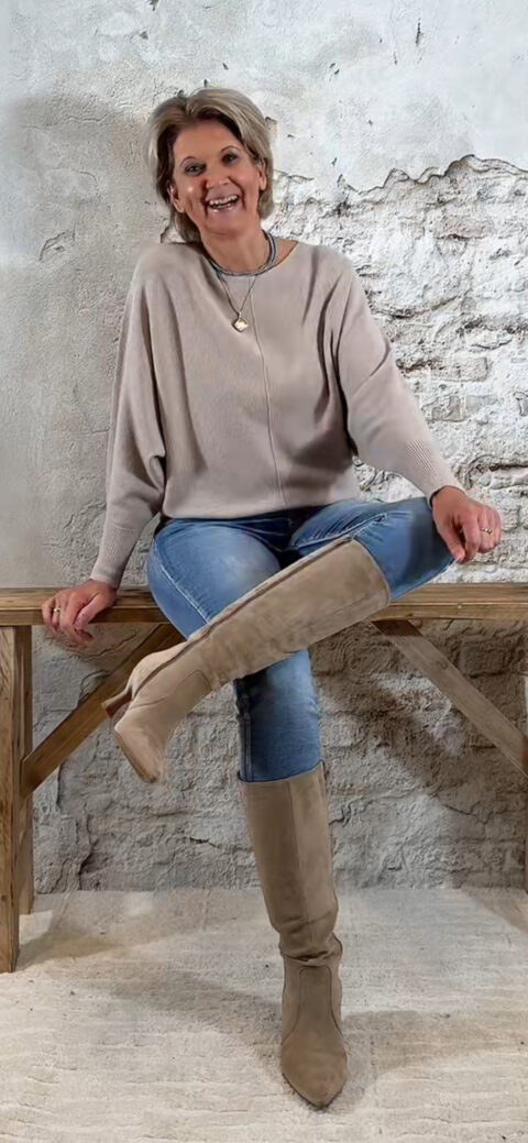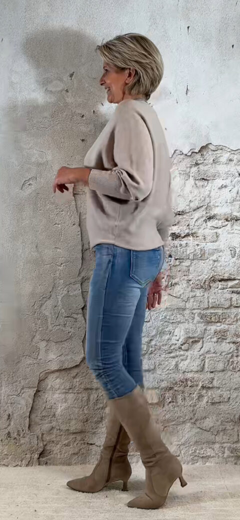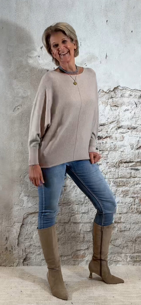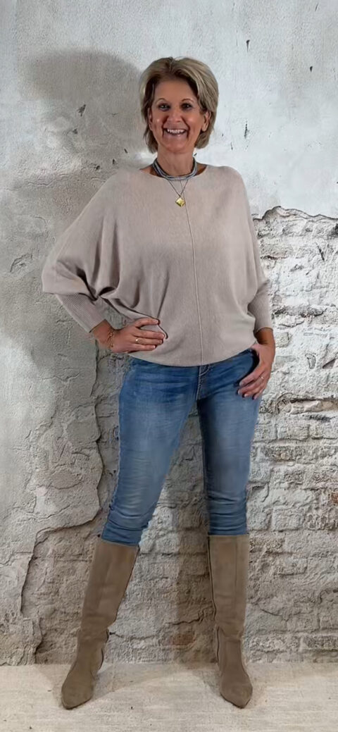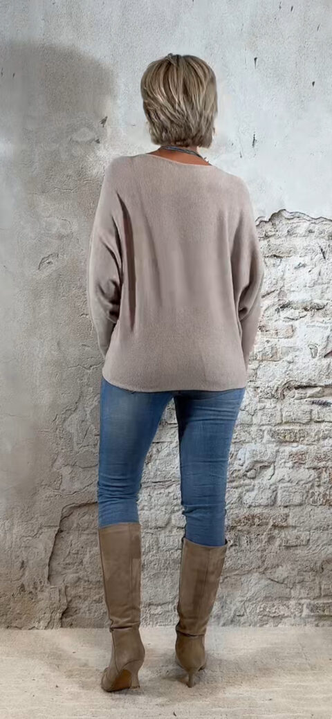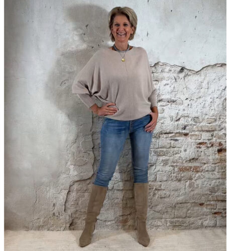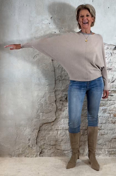 De Ailan Vlindertrui is een heerlijke, zachte en dikke knit die direct een luxe, vrouwelijke en cozy uitstraling geeft. De brede vlindermouw-pasvorm valt soepel en elegant, terwijl de onderkant licht aansluit zodat je de trui mooi kunt blousen voor een flatterende fit.