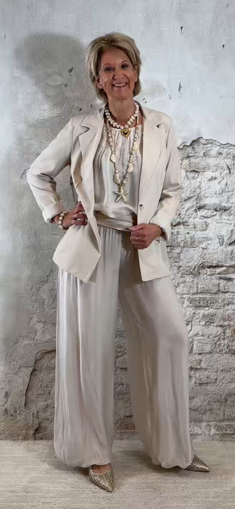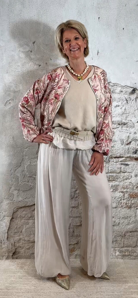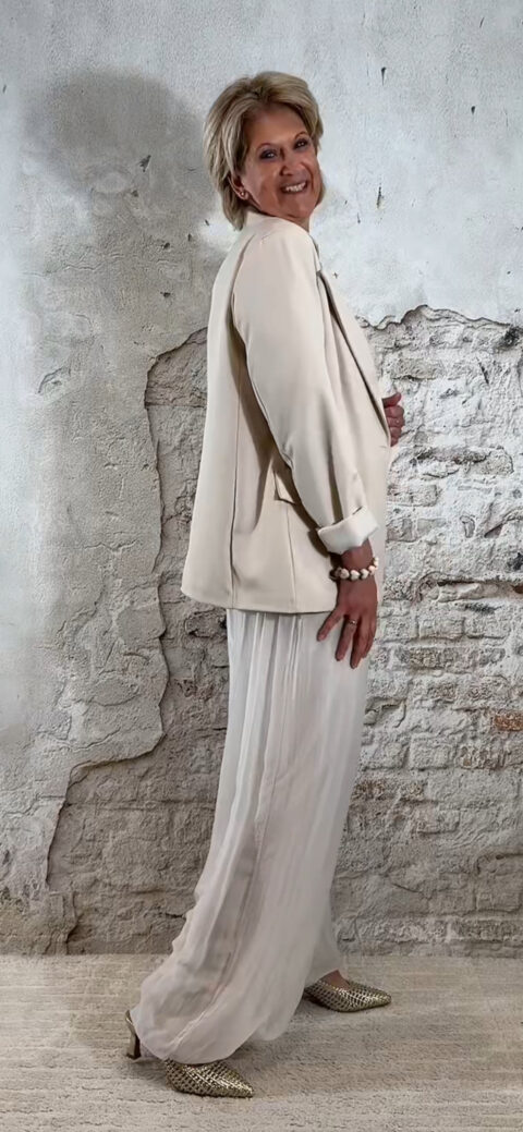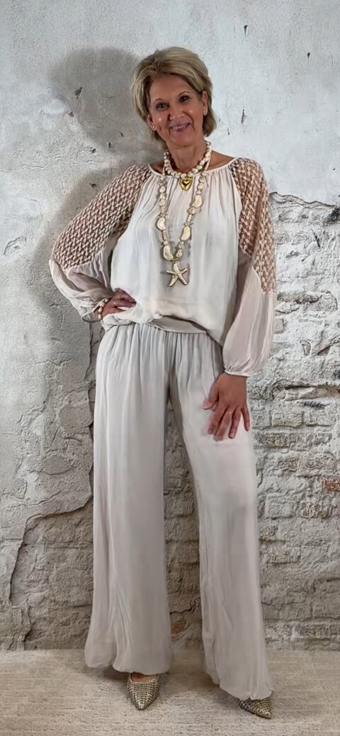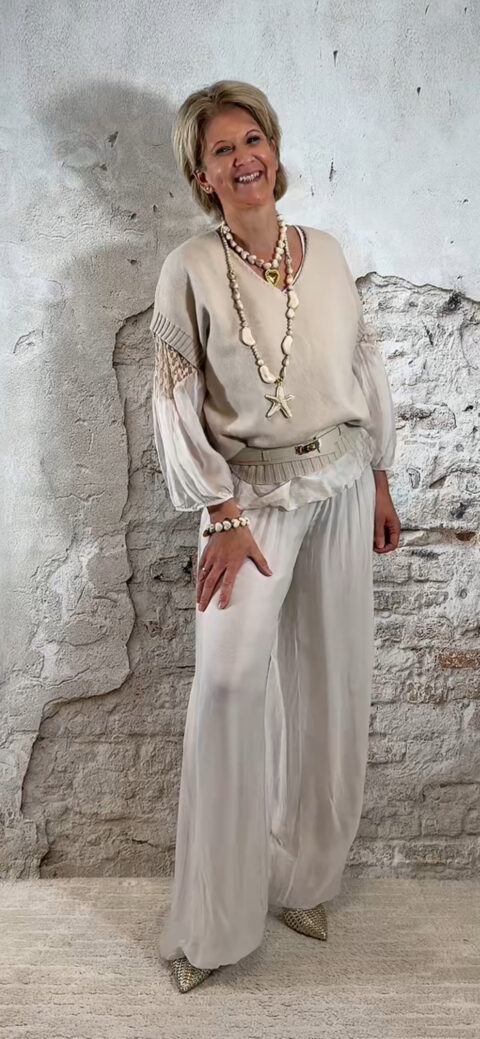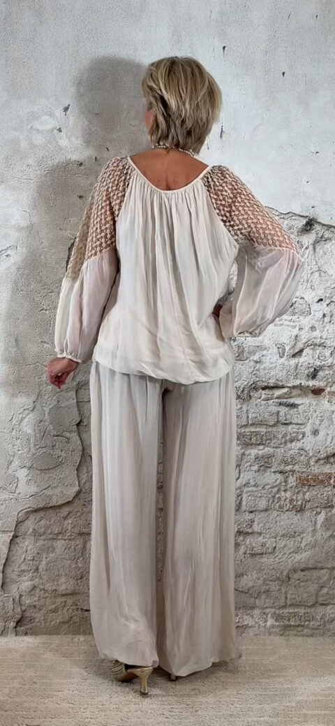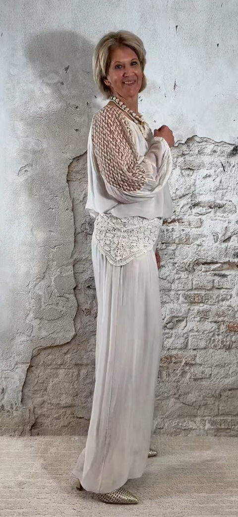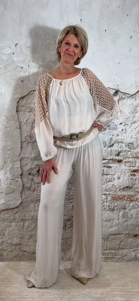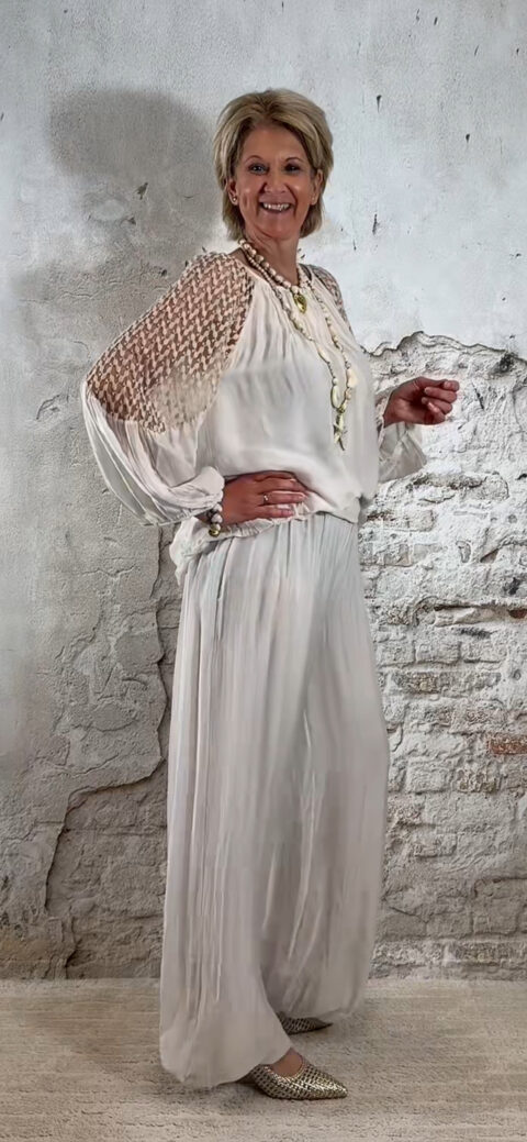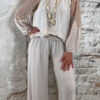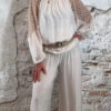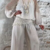 De stijl is perfect te omschrijven als Ibiza chic: luchtig, vrouwelijk en moeiteloos stijlvol. Combineer de broek met de bijpassende ballon top voor een complete set of draag hem met een zomerse top of tuniek voor een meer casual uitstraling.