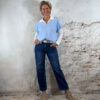 De broek valt ruim, daarom adviseren wij om één maat kleiner te bestellen dan je normale maat. De lengte van de ballon jeans mag iets korter zijn, maar kan ook op lengte gedragen worden.