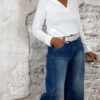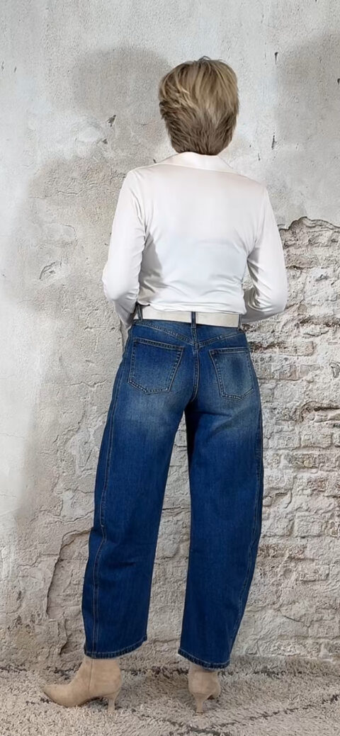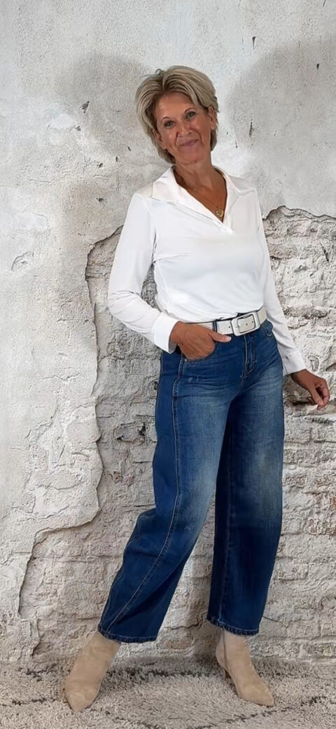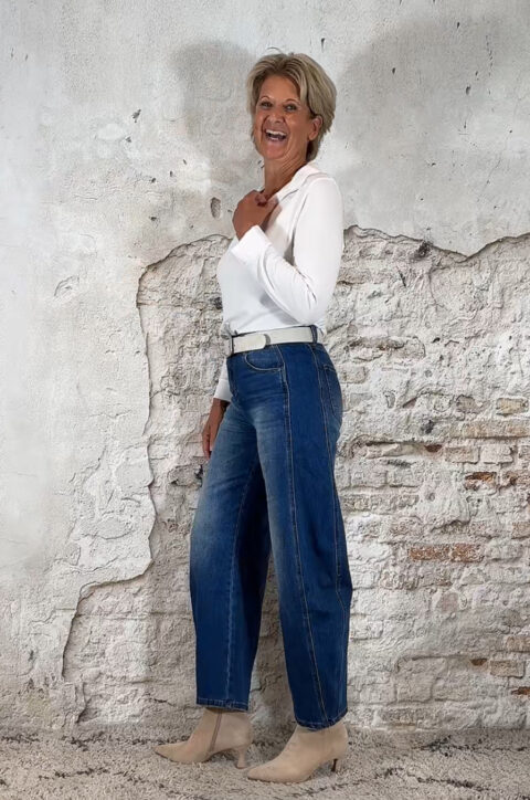 De lengte van deze jeans mag iets korter vallen – dat oogt juist speels en slank.