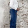 De jeans heeft een mooie stone wassing met subtiele ‘scratches’ – lichte schrapen die niet volledig zijn doorgescheurd, waardoor de broek een robuuste maar toch verzorgde uitstraling krijgt.