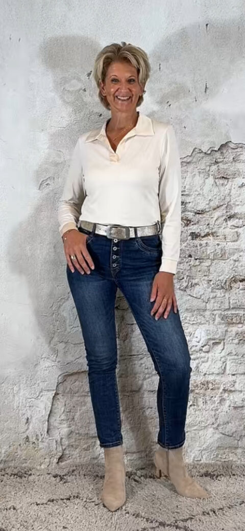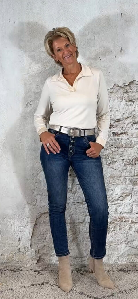Deze fijne basic polo longsleeve is gemaakt van 95% viscose met 5% elastan. Het subtiele glansje op de kraag en manchetten geeft net dat beetje extra flair.
