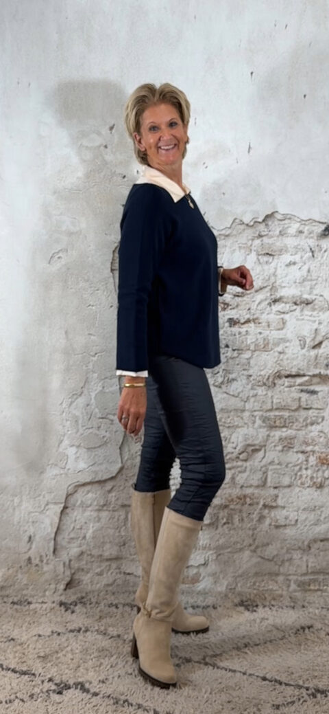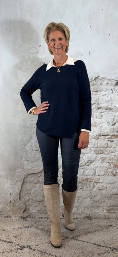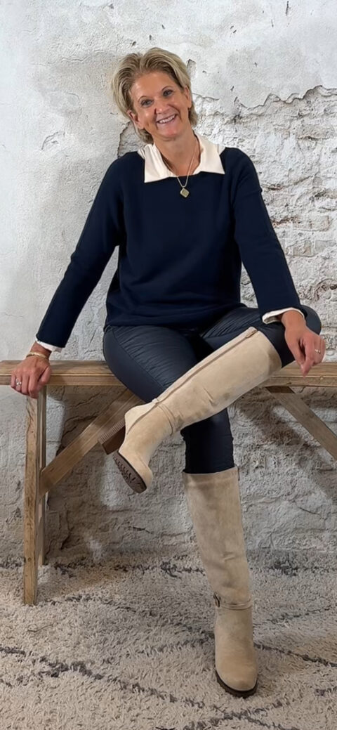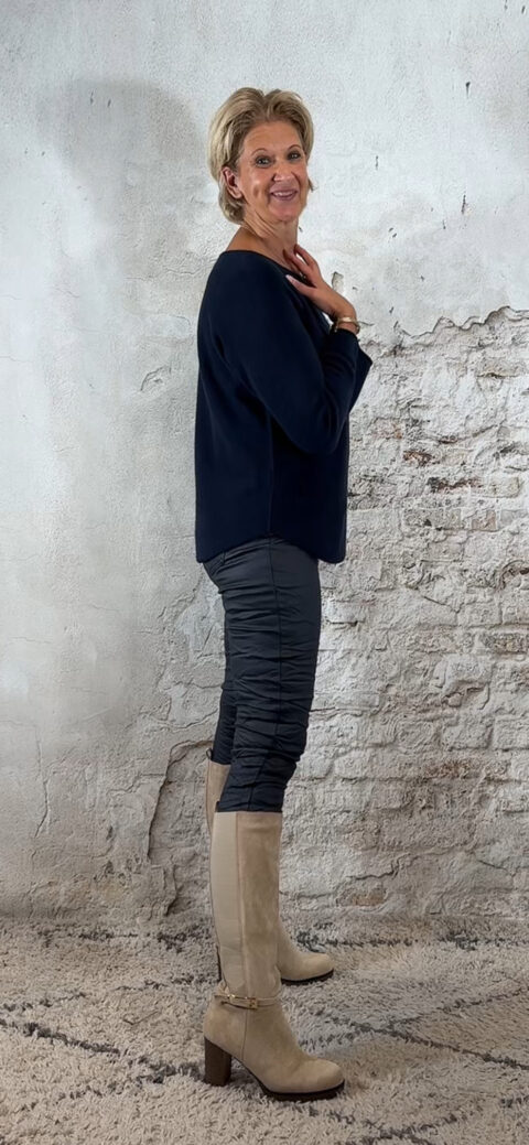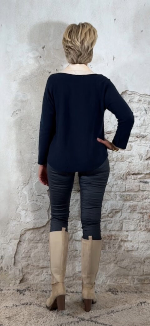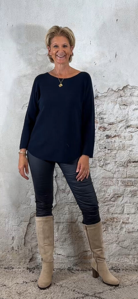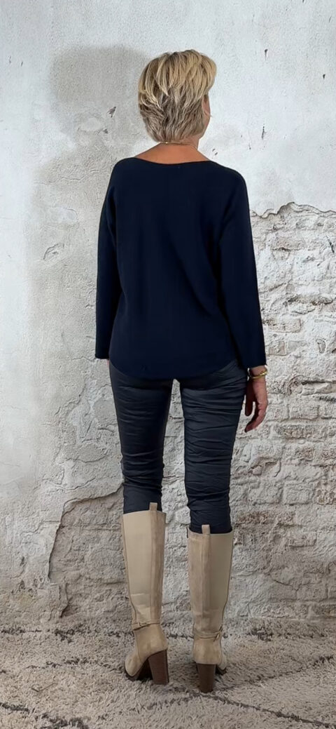 De stof is gemaakt van een zachte mix van 52% viscose, 25% polyester en 23% polyamide – soepel, ademend en vormvast. Hierdoor voelt de trui zacht aan, blijft hij mooi in model en draagt hij prettig de hele dag.