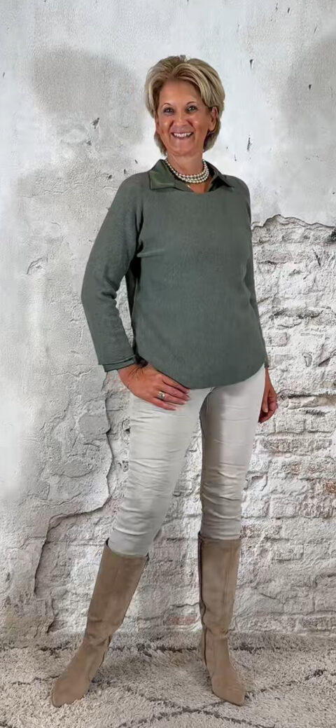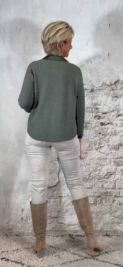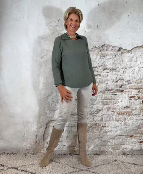 • Khaki pullover met ronde hals