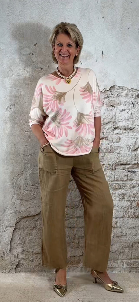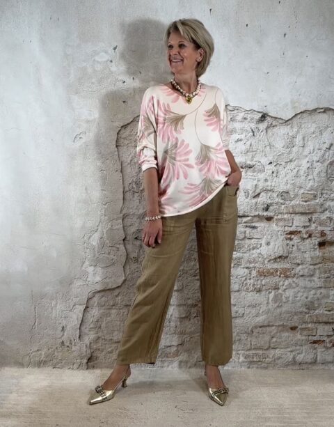 De Bibi casual linnen broek is een comfortabele en luchtige broek met een natuurlijke uitstraling. Het model heeft een rechte pijp en een ontspannen pasvorm waardoor de broek soepel en nonchalant valt.