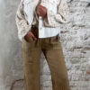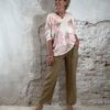 De taille is voorzien van een elastische band, waardoor de broek prettig zit en makkelijk aan en uit te trekken is. Aan de voorkant zit een kokosknoop, wat zorgt voor een mooi natuurlijk detail. De opgestikte zakken geven de broek een casual en speelse uitstraling.