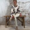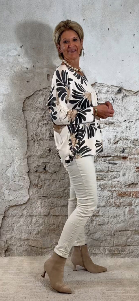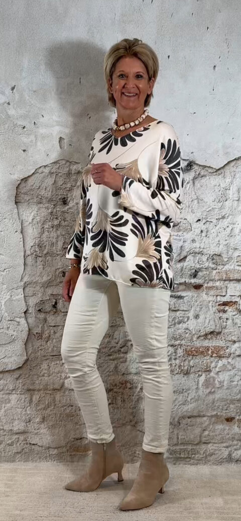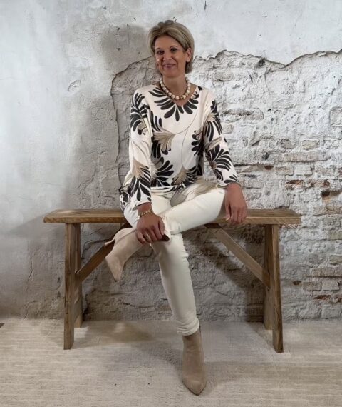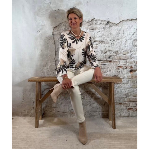 De Bibi dunne pullover leafs is een zachte, lichte knit met een speelse bladerenprint. Het model heeft een dunnere kwaliteit en voelt heerlijk zacht aan, perfect voor het voorjaar en frisse zomerdagen. De print geeft de pullover een subtiel accent zonder druk te worden.