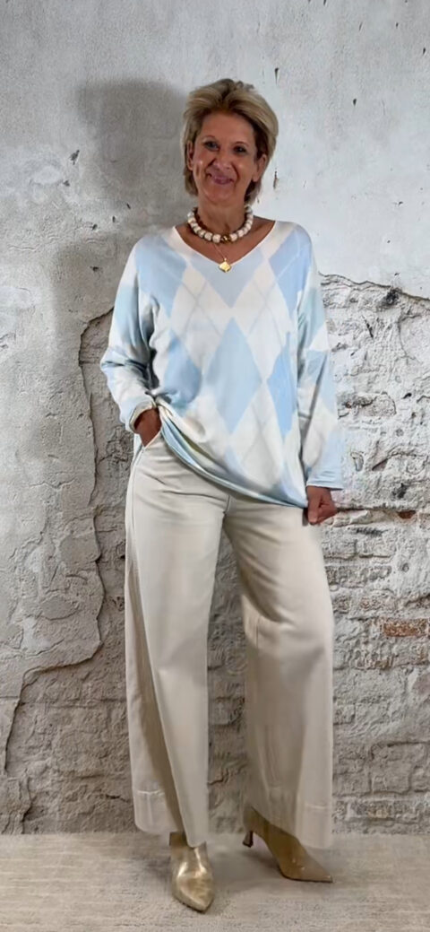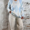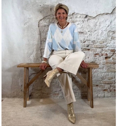 De Bibi dunne pullover ruit in lichtblauw is een zachte, frisse knit met een lichte en vrouwelijke uitstraling. Het ruitpatroon geeft de trui een speels detail, terwijl de lichtblauwe kleur perfect past bij het voorjaar en makkelijk te combineren is.