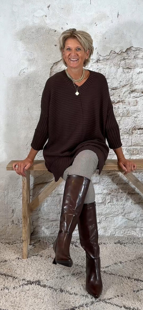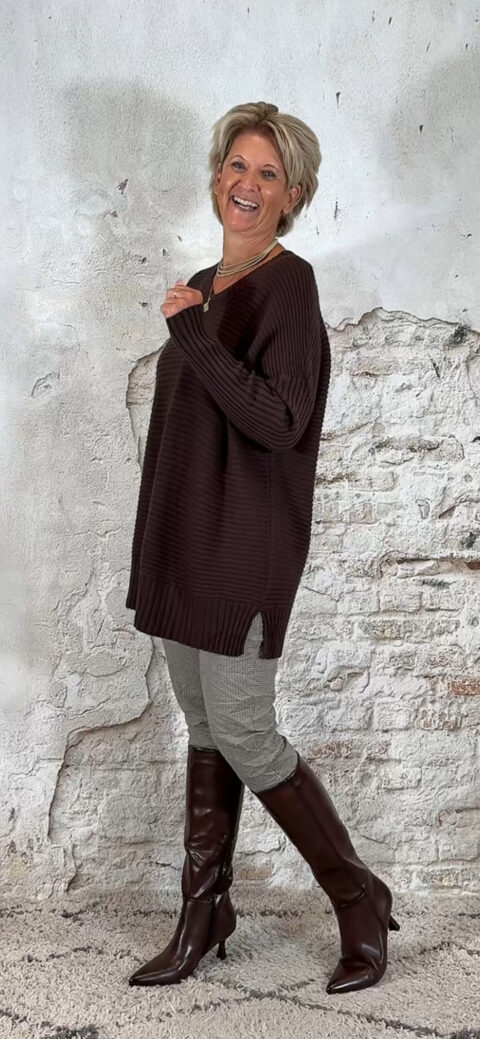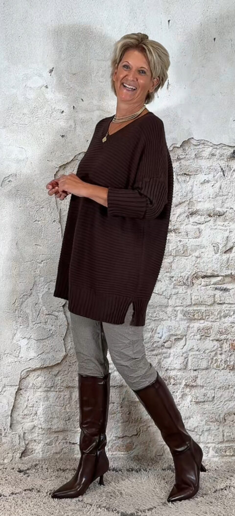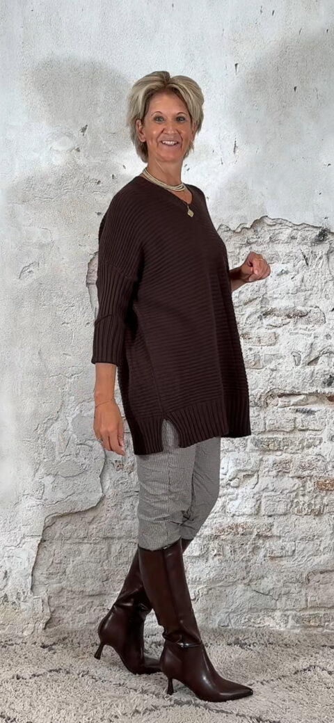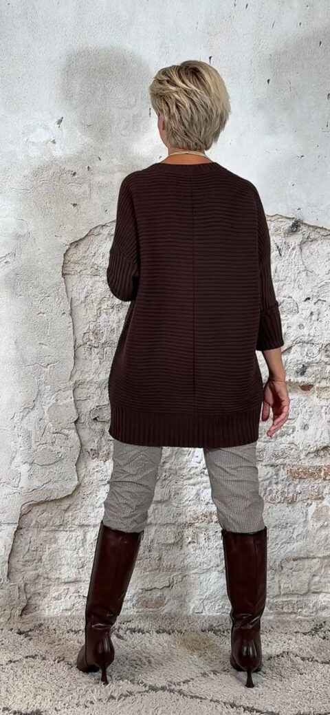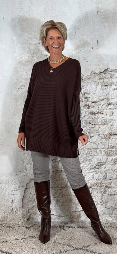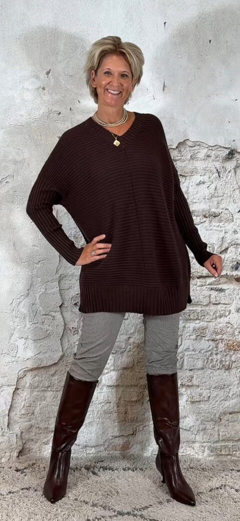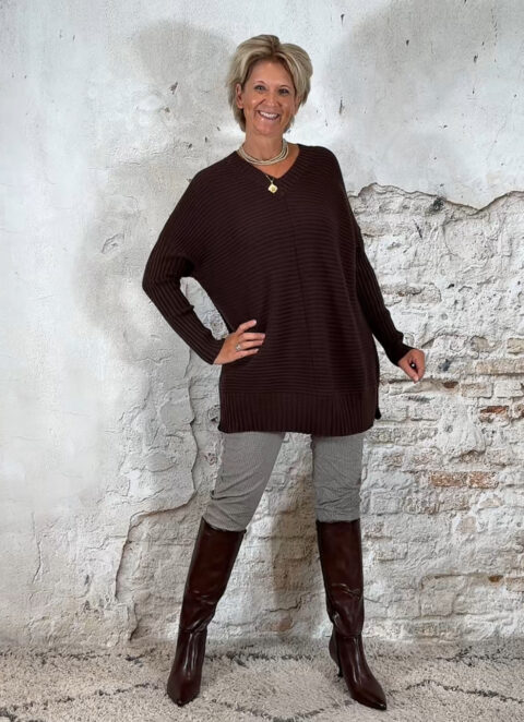 Oversized ribbeltrui met V-hals